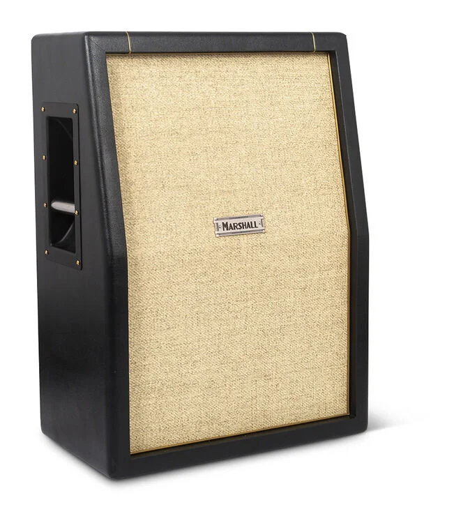 Premium finger-jointed plywood enclosure, with handsome levant covering, gold piping, and beading, and the old-school Marshall “coffin” logo